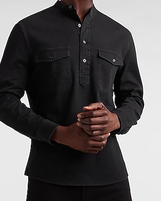 Slim Black Stretch Denim Popover Shirt Express